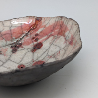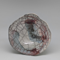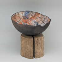 Cuits une première fois à 980° C, ils sont ensuite partiellement émaillés. A la dernière étape de l’enfumage le carbone s’incruste dans les craquelures des parties émaillées et révèle le réseau de nervures crée par le choix de l’émail, son application, le choc thermique...