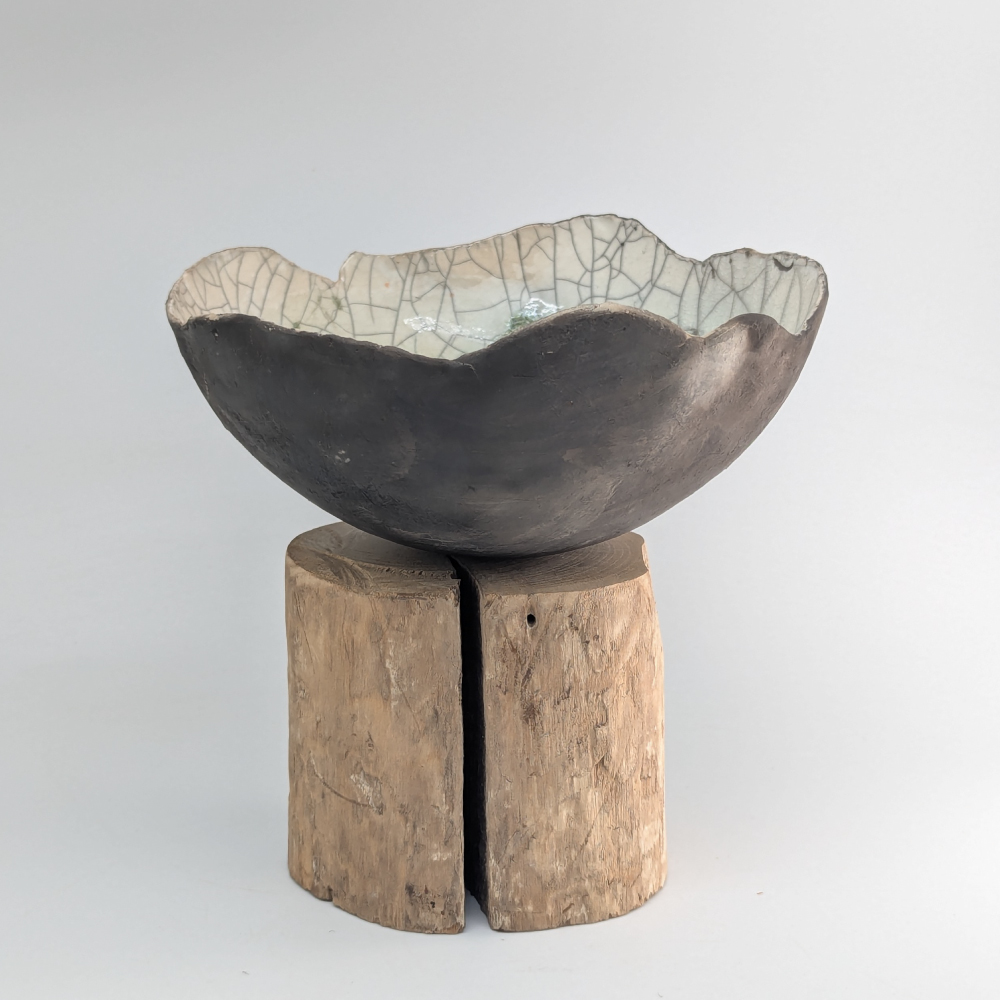 Petite coupe COQUES - Grès, oxydes, engobes, émaux - Technique : modelage et raku. Pièces uniques signées.